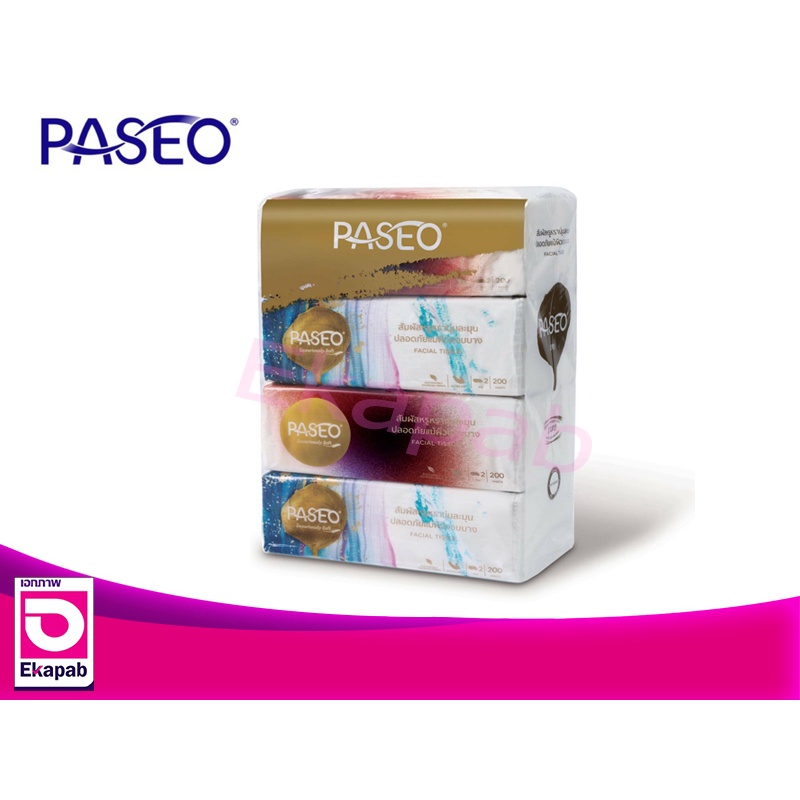 Paseo พาซิโอ กระดาษทิชชู่ ลักซ์ชัว ซอฟท์แพ็ค 200 แผ่น (แพค 4ห่อ)