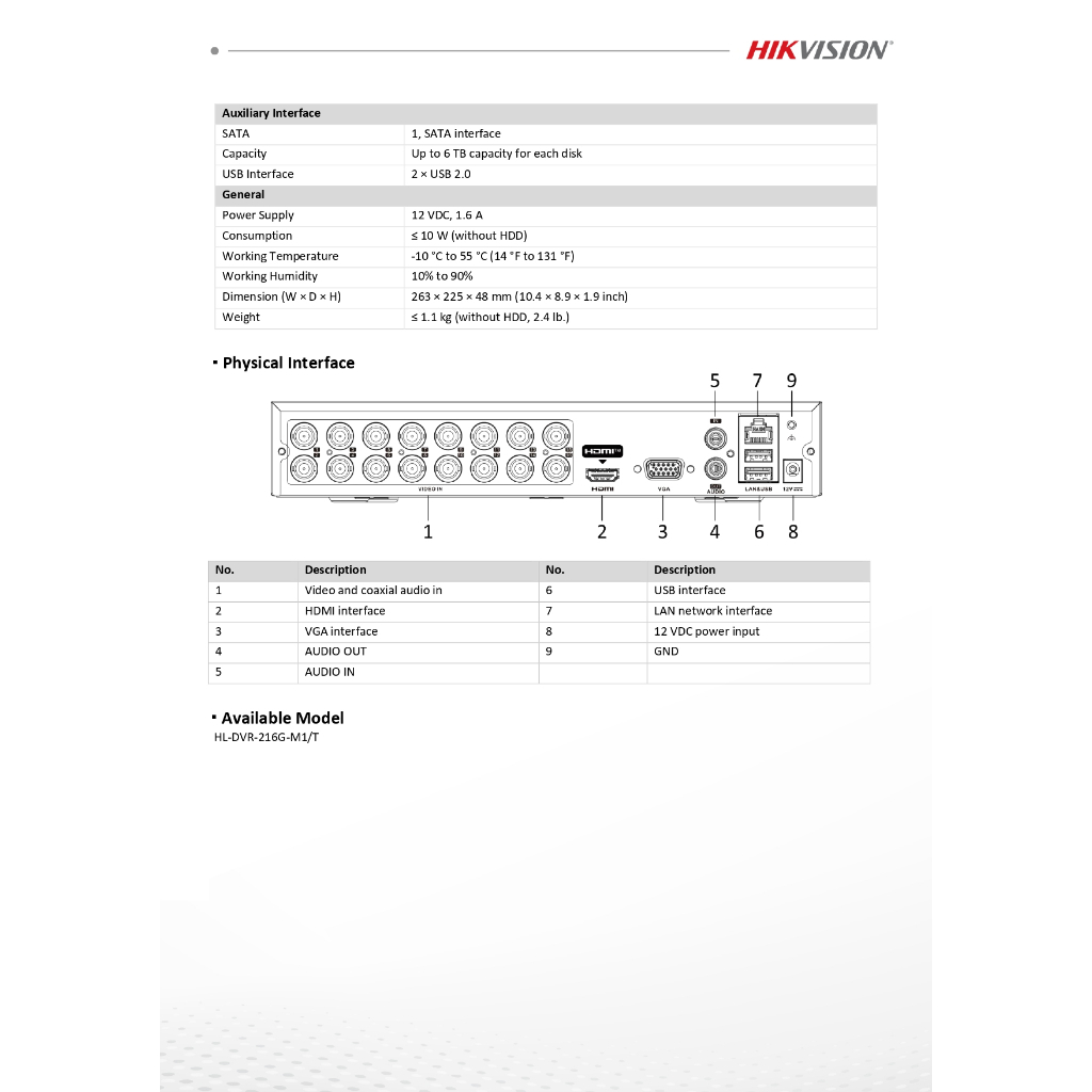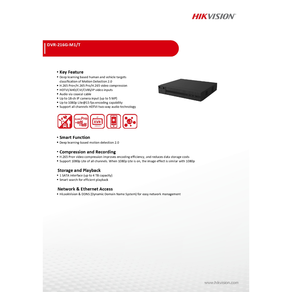 HiLook เครื่องบันทึกกล้องวงจรปิด 16 ช่อง รุ่น DVR-216G-M1/T - รุ่นใหม่มาแทน DVR-216G-M1(C)