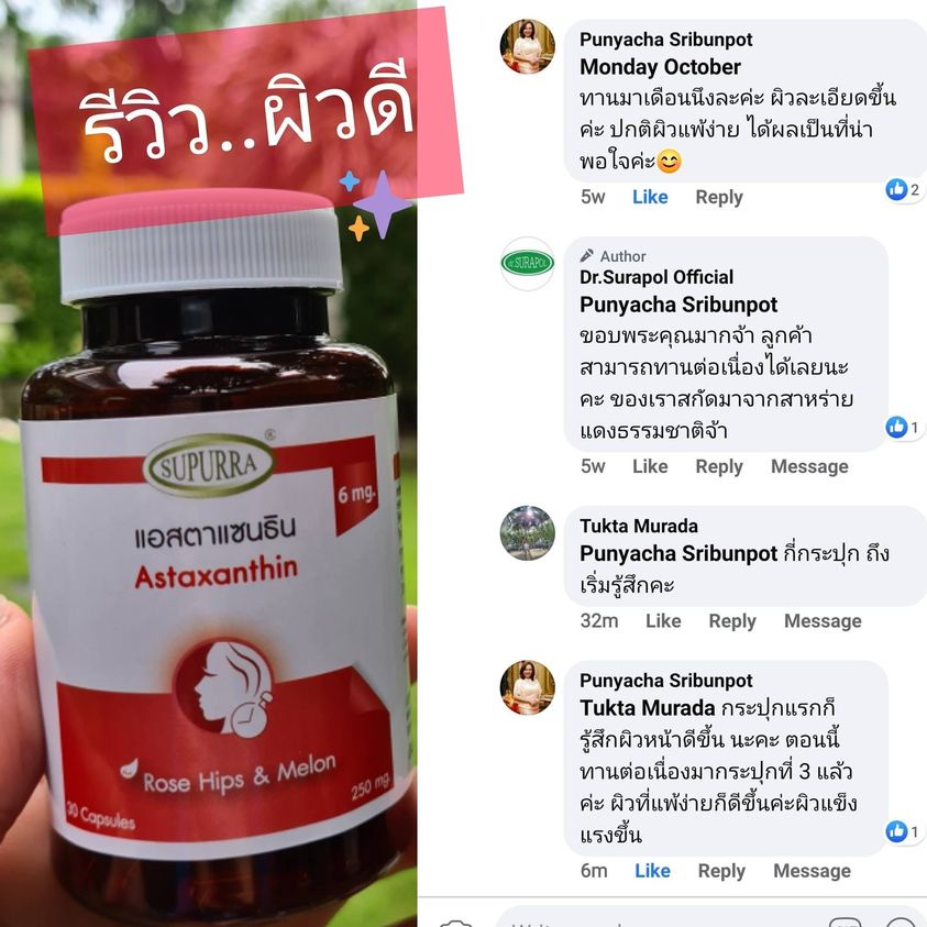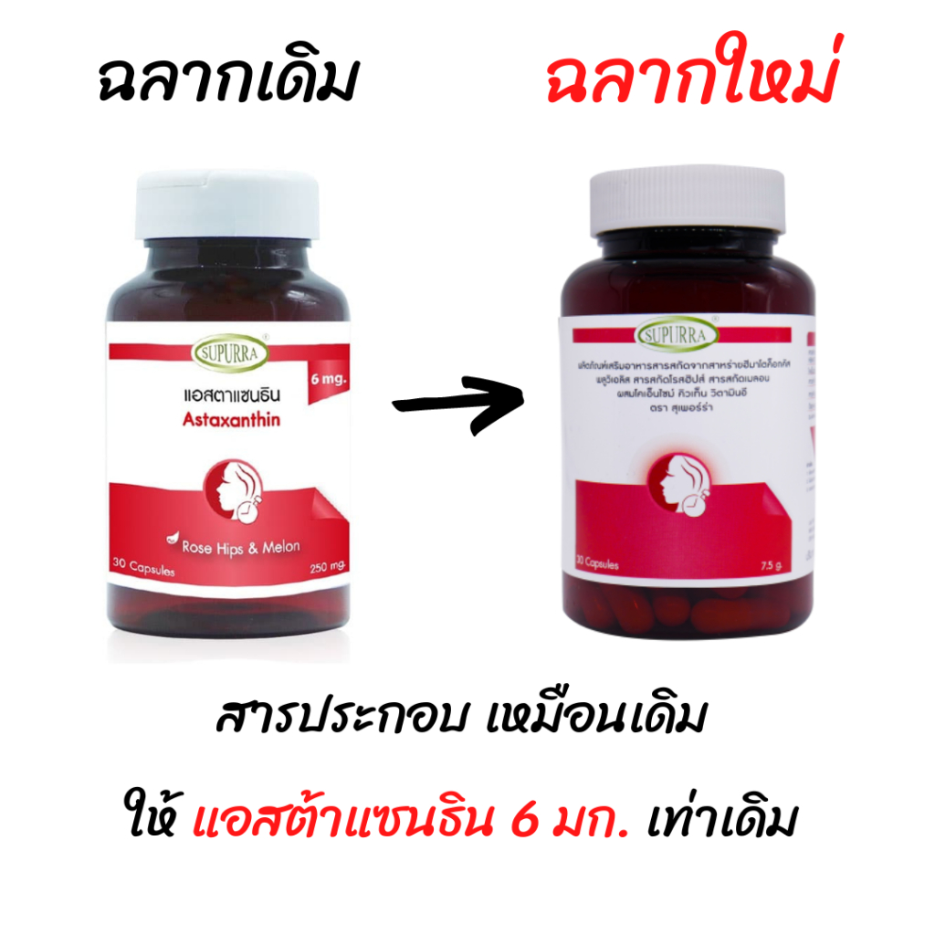 🔥ชะลอวัย ลดริ้วรอย ต้านแก่🔥แอสตาแซนธิน 6 มก. 30 แคป Astaxanthin Co Q10 โคเอนไซม์คิวเทน โคคิวเท็น