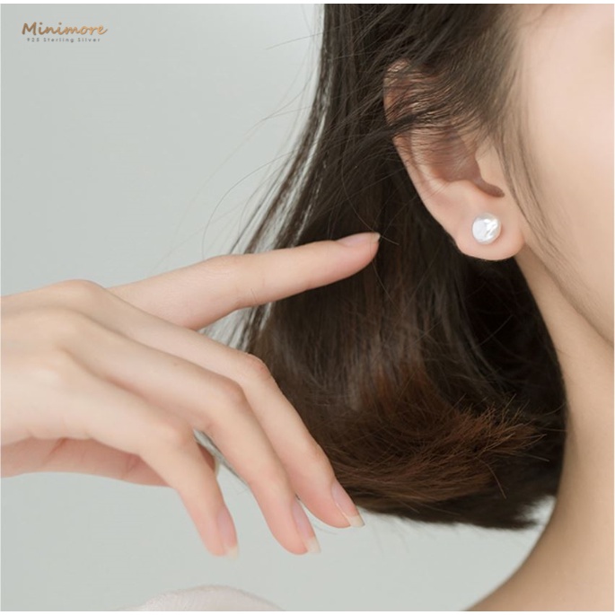 [SE618]🌟ต่างหูเงินแท้ 92.5%🌟มุกน้ำจืด ทรงบาร็อคธรรมชาติ เท่ห์ไม่ซ้ำใคร ฟรี!กล่องจิวเวอรี่ Minimore
