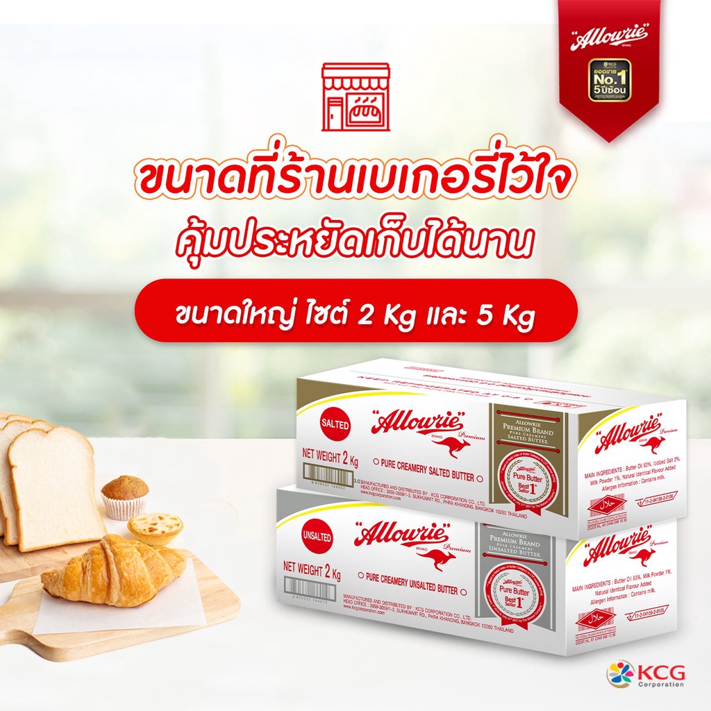 Allowrie Premium Unsalted Butter อลาวรี่ พรีเมี่ยมเนยแท้ รสจืด ขนาด 2 กก.