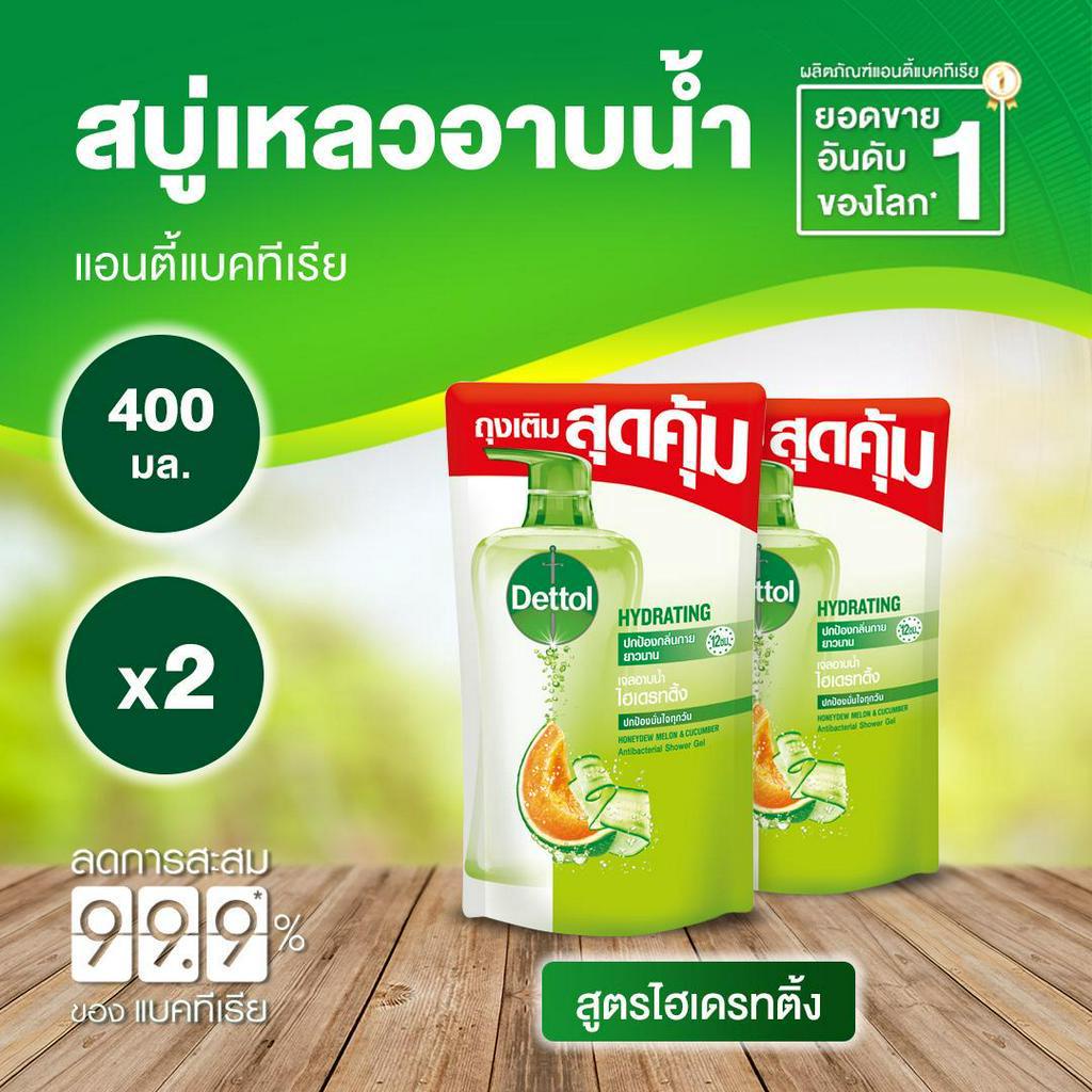 Dettol เดทตอล เจลอาบน้ำชนิดถุงเติม สบู่เหลวเดทตอล แอนตี้แบคทีเรีย สูตรไฮเดรทติ้ง 370มล.X2
