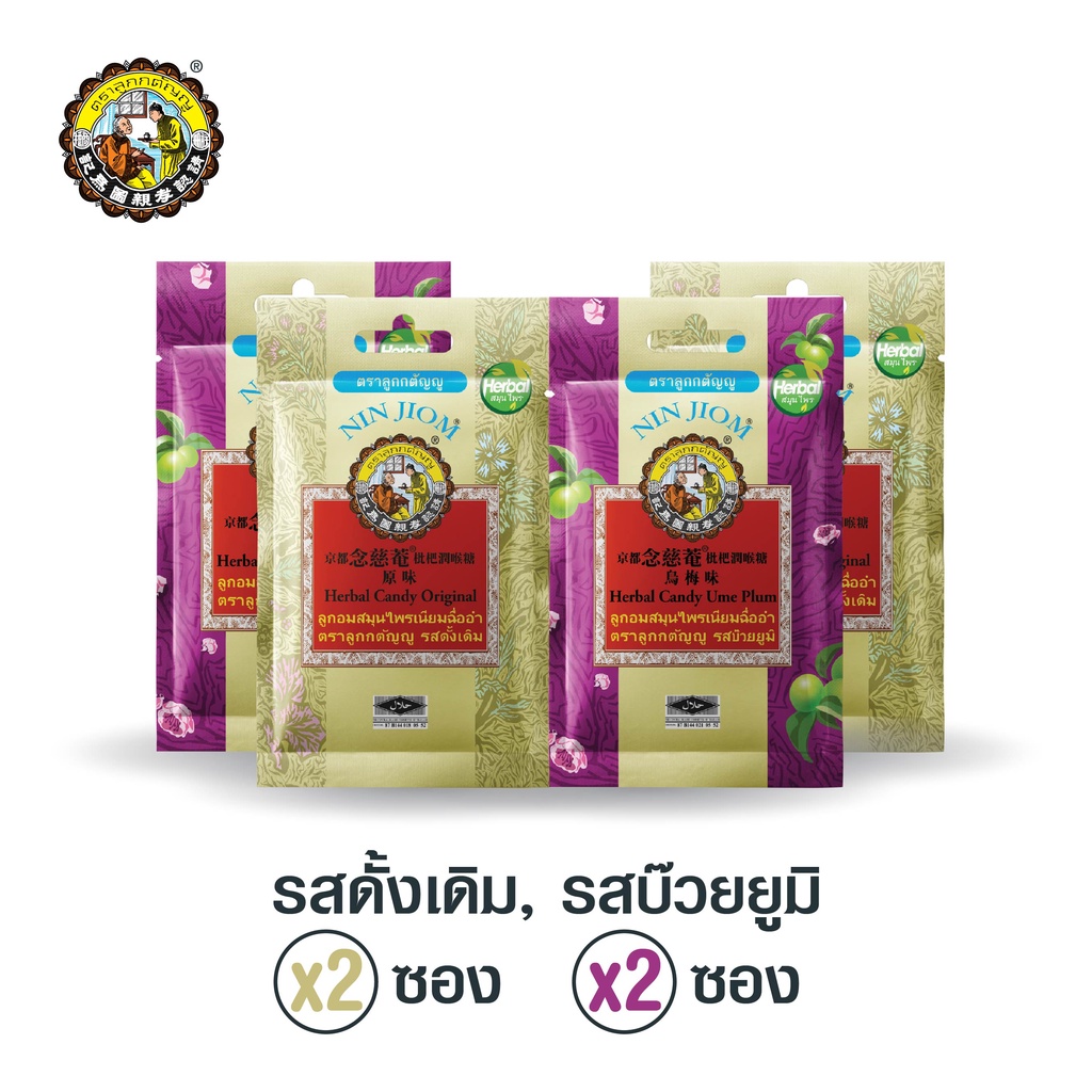 [4 ซอง] NIN JIOM เนียมฉื่ออำ ลูกอมสมุนไพรตราลูกกตัญญู 20 กรัม (ซอง)