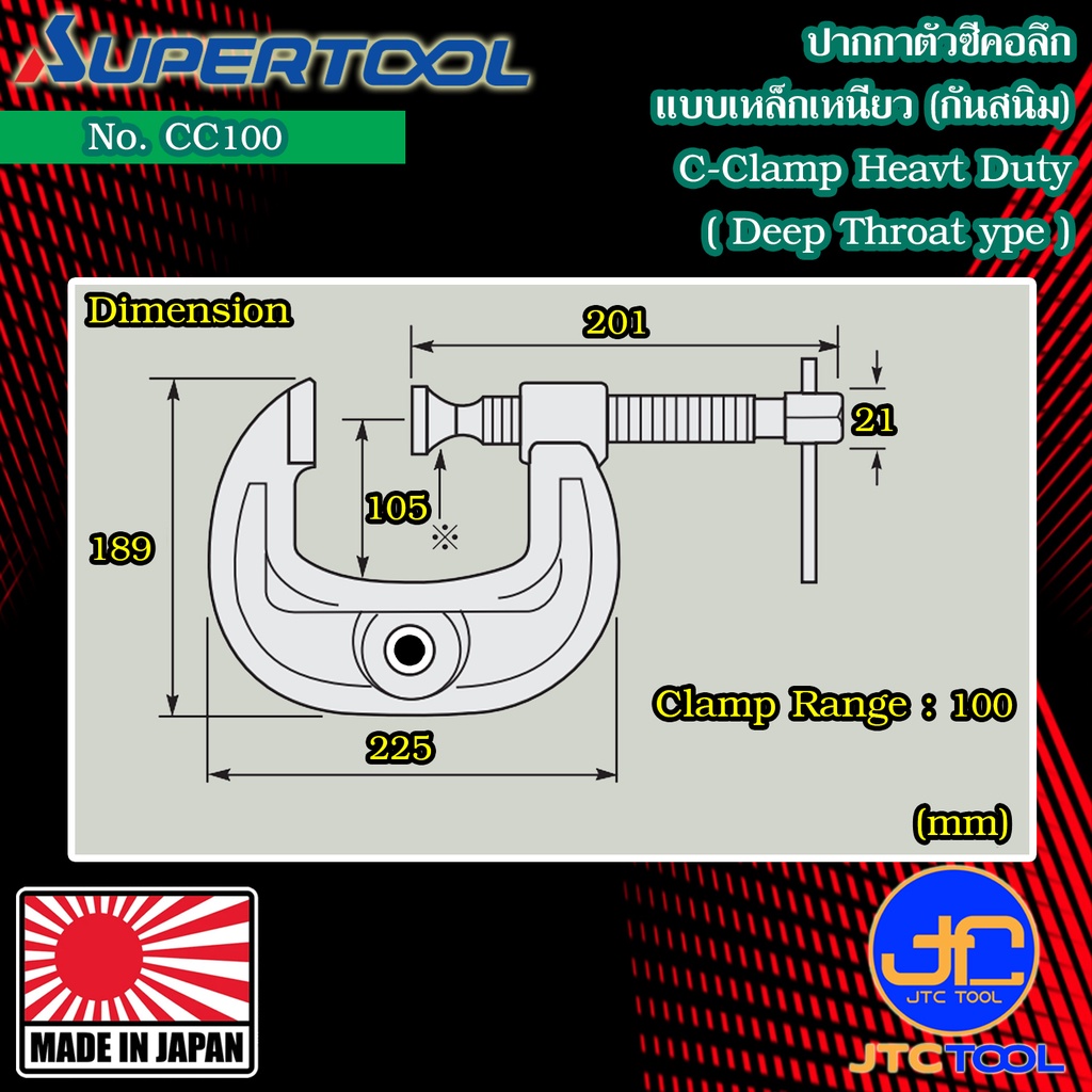 Supertool ซีแคล้มคอลึกสำหรับงานหนักปากกว้างพิเศษ รุ่น CC - C-CLAMP (Heavy duty wide type) CC Series