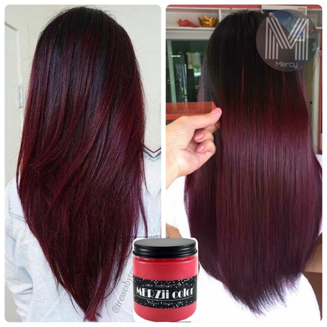 Burgundy สีแดงหม่นMerzii ทรีทเม้นท์สีผมเคราติน ไม่มีแอมโมเนียผมไม่แห้งเสียกลิ่นหอม