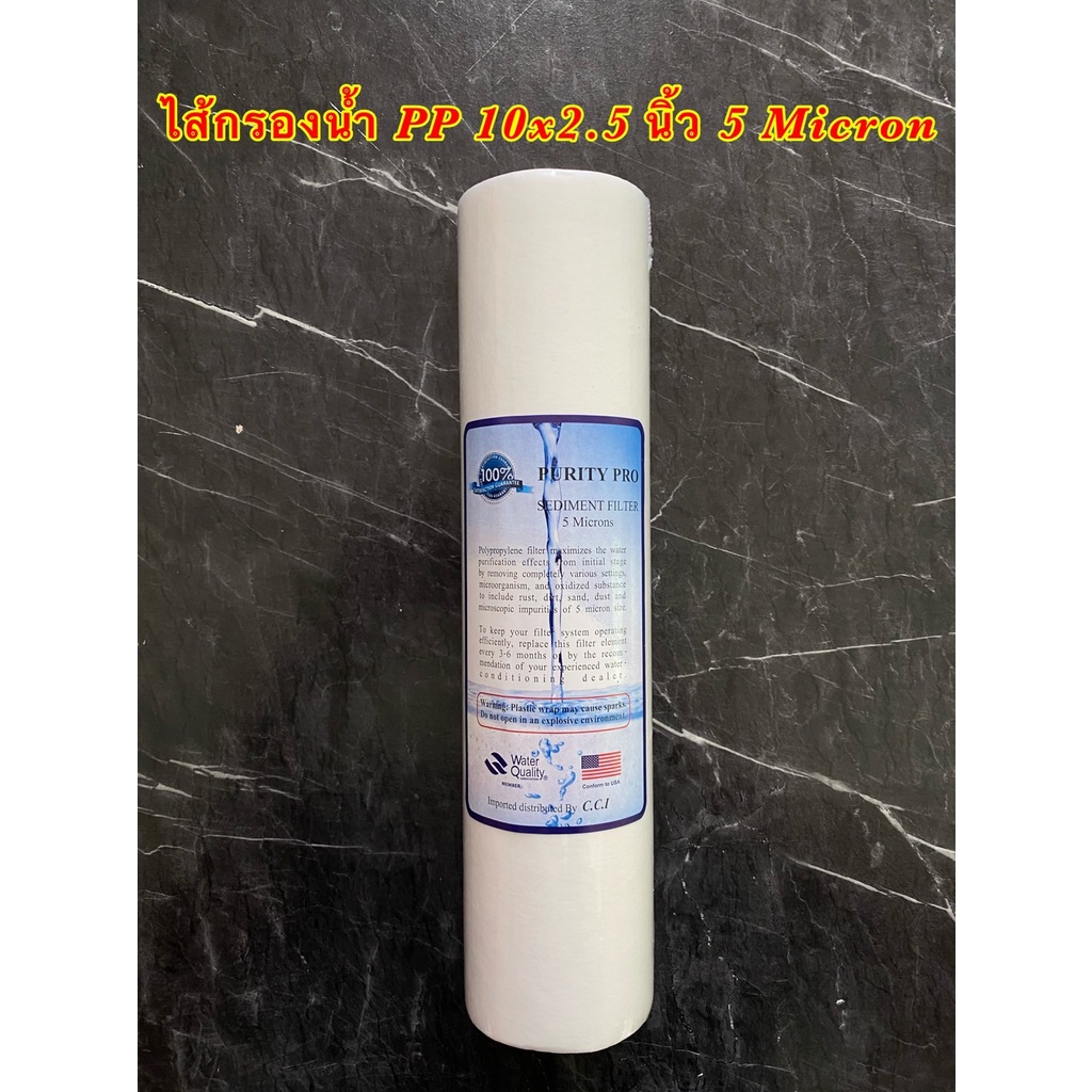 ไส้กรองน้ำ PP 10 นิ้ว 5 Micron ไส้กรองพีพี 5 ไมครอน (แพ็ค 10 ชิ้น แถมฟรี 2 ชิ้น) Purity pro ไส้กรองหยาบ