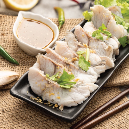 Qfresh เนื้อปลากะพงหั่นชิ้นติดหนัง 20-30 g/pc 1 kg