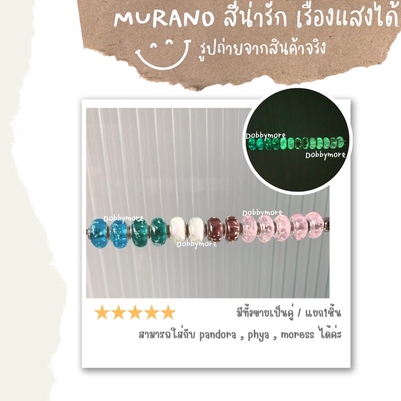 pandora murano สีน่ารัก เรืองแสงได้ ♥️ ใส่กับ ohm phya moress trollbeads งานน่ารัก พร้อมส่ง ราคาต่อคู่ค่ะ