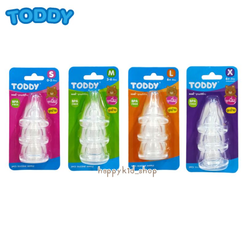 **จุกนิ่ม ดูดง่าย** TODDY ทอดดี้ จุกนมซิลิโคน คอแคบ ทอดดี้ (แพค 3 จุก)