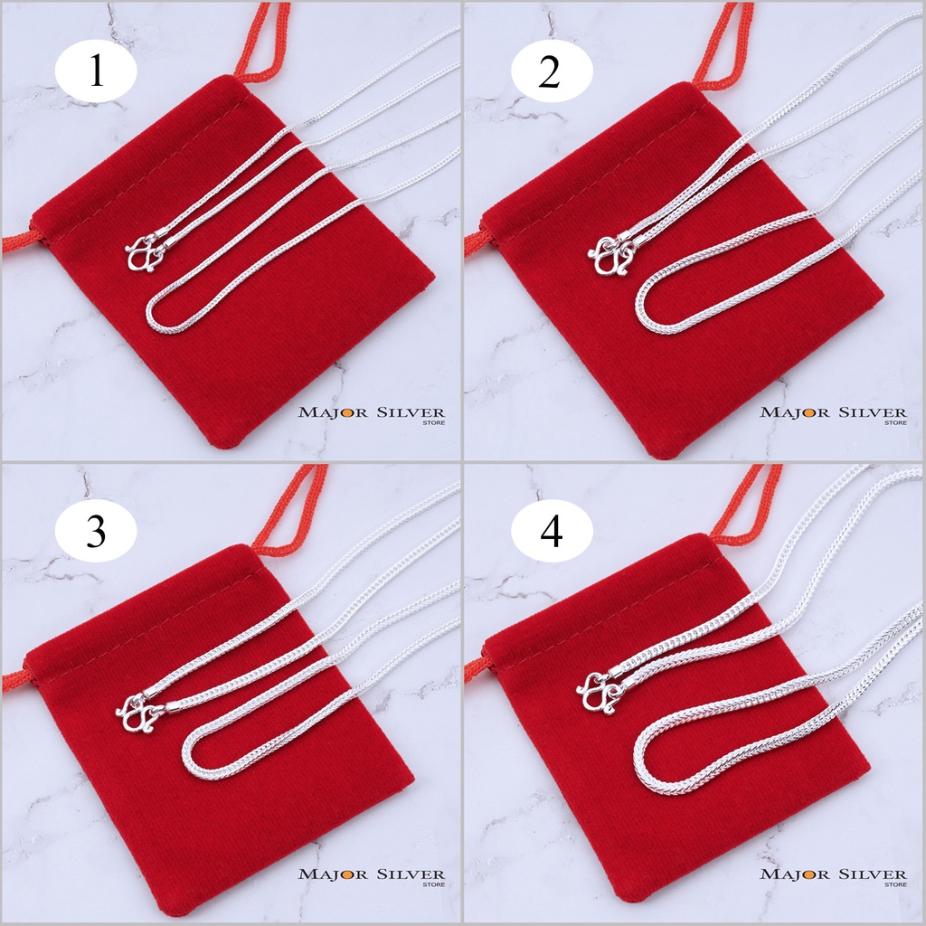 สร้อยคอเงินแท้92.5% ลายสี่เสาสี่เหลี่ยม ยาว14 ถึง 30 นิ้ว ตะขอตัวเอ็ม : สร้อยคอ ชุดสี่เสาสี่เหลี่ยม