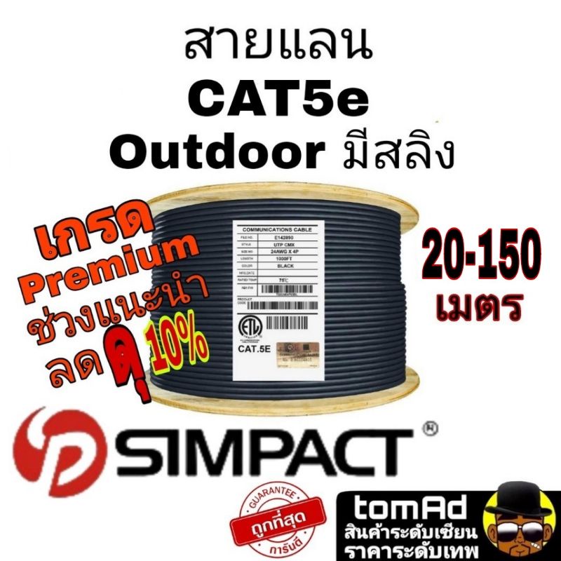 สายแลน⚡️SIMPACT Cat5e Outdoor มีสลิง⚡️แท้ 100% 20-150เมตร| สายLan | ภายนอก มีสลิง คุณภาพเทียบเท่า Cat5e Link