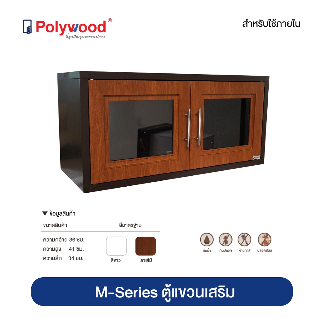 ส่งฟรี Polywood โพลีวูด - ตู้แขวนเสริม ชุดครัว ABS รุ่น M-SERIES+ ขนาด 86x41x34 CM. สีขาว และสีลายไม้