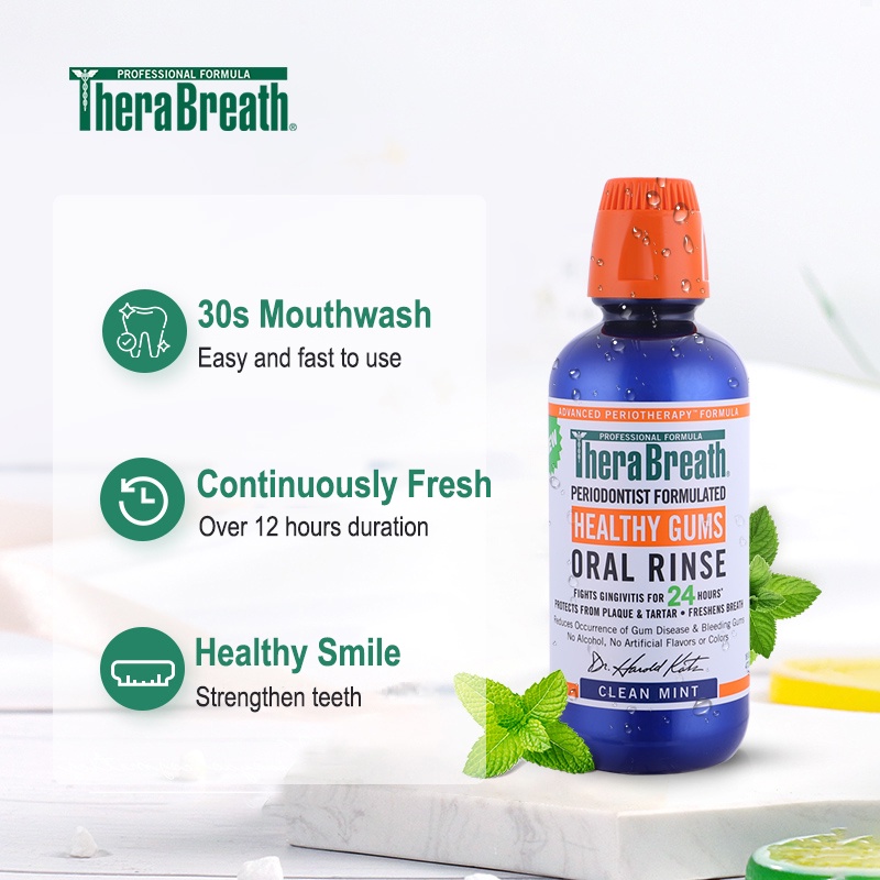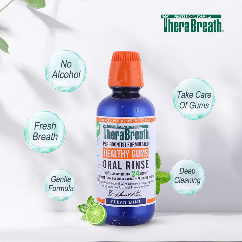 [0493] น้ำยาบ้วนปาก สูตรปราศจากแอลกอฮอล์ Clean Mint TheraBreath Oral Rinse 473ml Health Fresh Breath