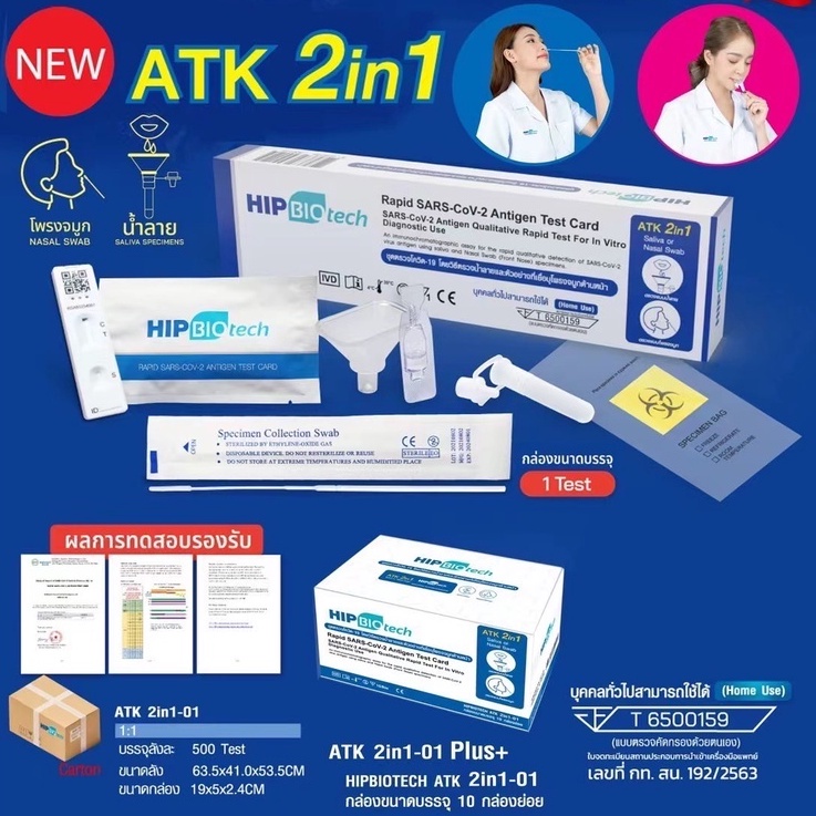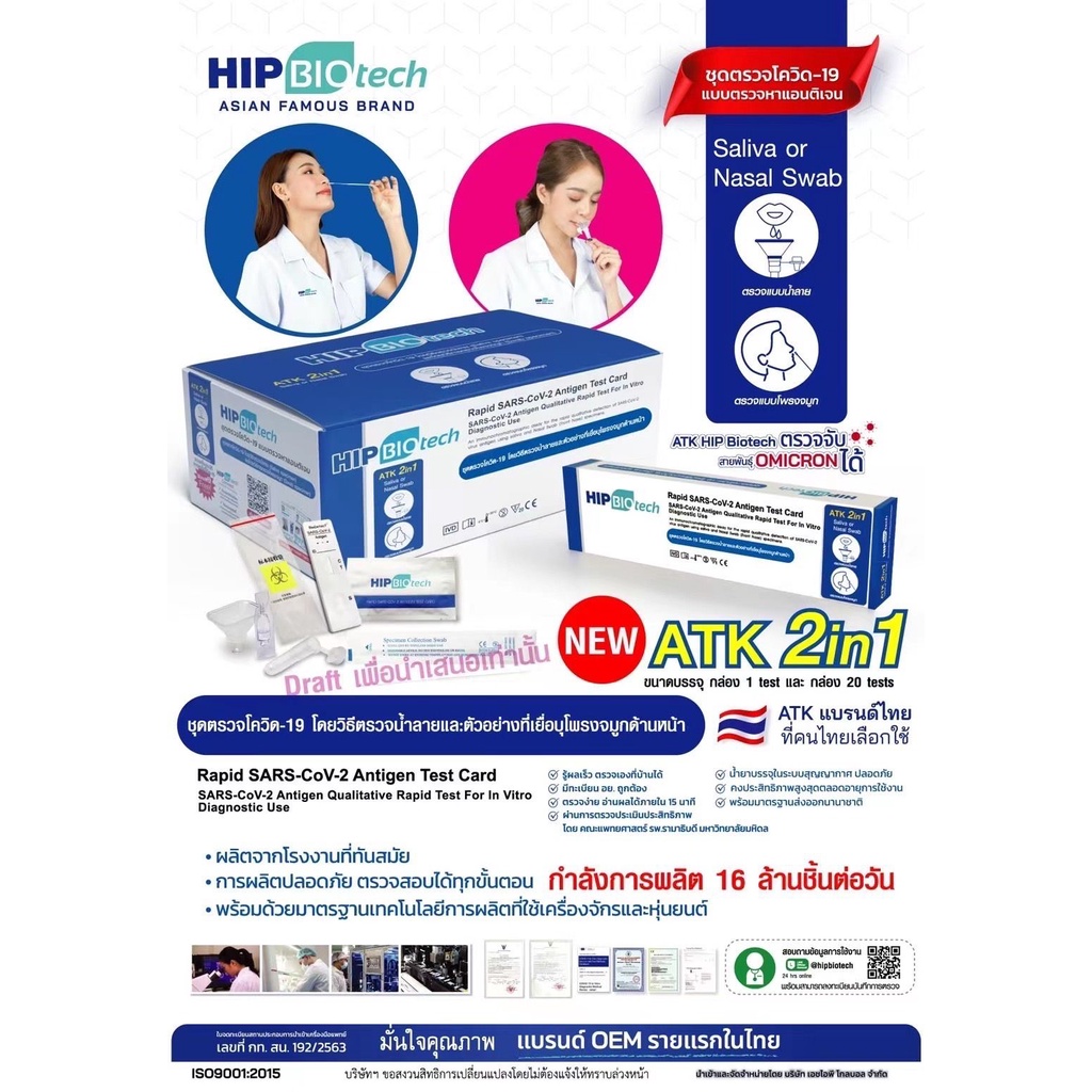 [20 กล่อง]ใหม่ Hip Biotech 2in1ATK Rapid SARS-CoV-2 ชุดตรวจ แอนติเจนโควิด19