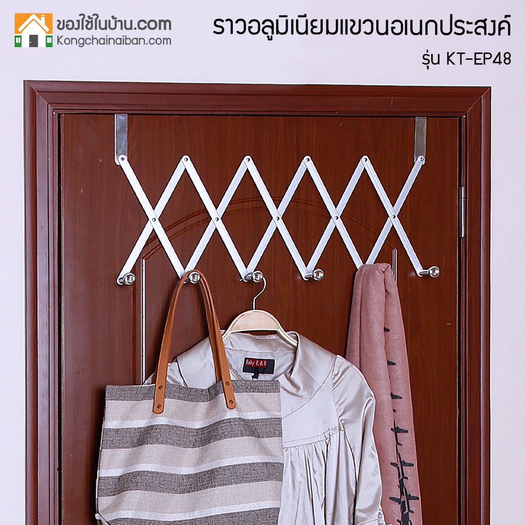 KANTAREEYA ราวอลูมิเนียมแขวนเอนกประสงค์แบบไม่ต้องเจาะผนัง ก.(ลึก)6.8xย.15-136xส.12-37cm รุ่น KT-EP48