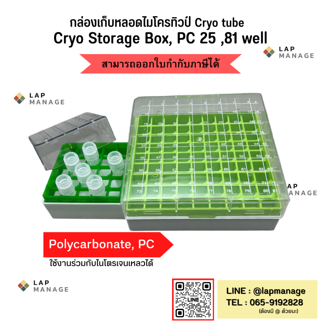 กล่องเก็บหลอดไมโครทิวป์, Cryo tube (Cryo Storage Boxes, PC) 25 ,81 ,100 well