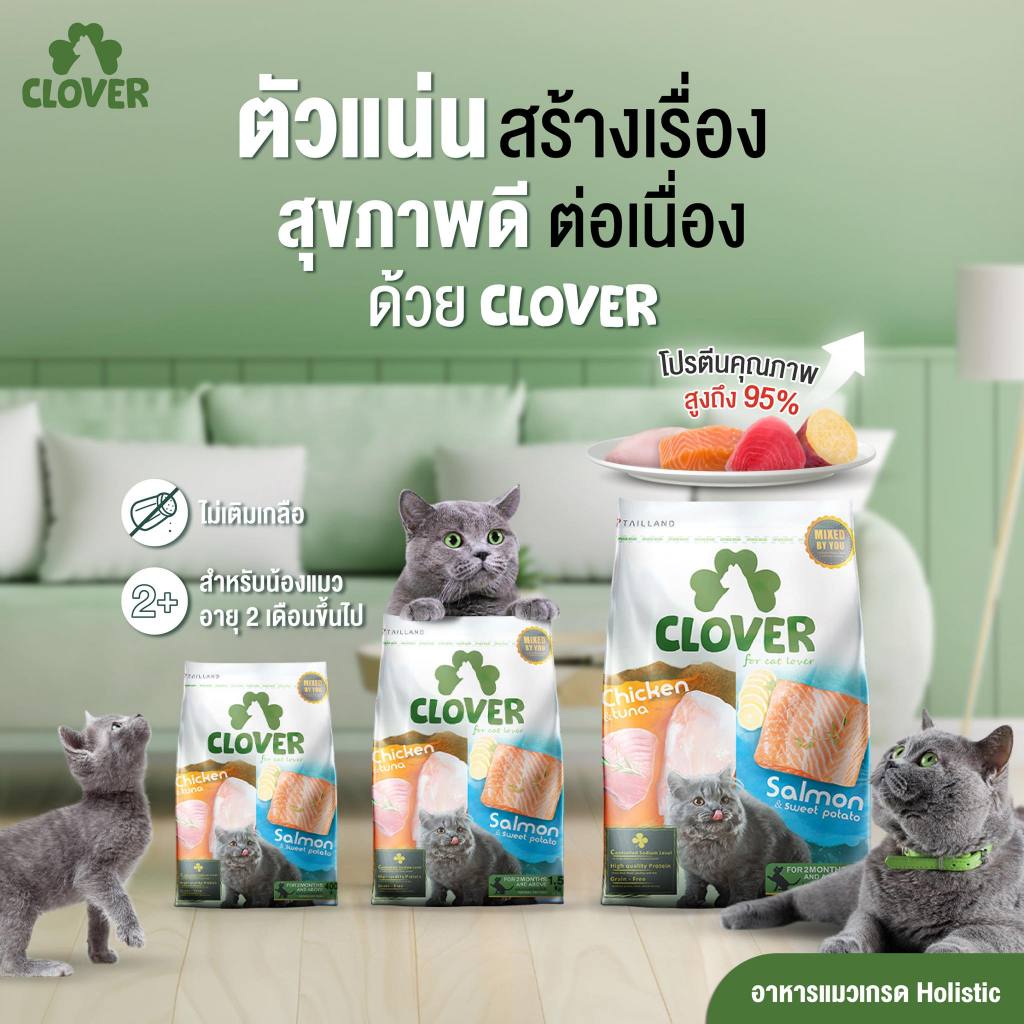 ✅แบ่งขาย✅ Clover อาหารแมว โฮลิสติกและเกรนฟรี ขนสวยเงางามฟูฟ่อง อุดมไปด้วยโอเมก้า 3และ6 และ zinc