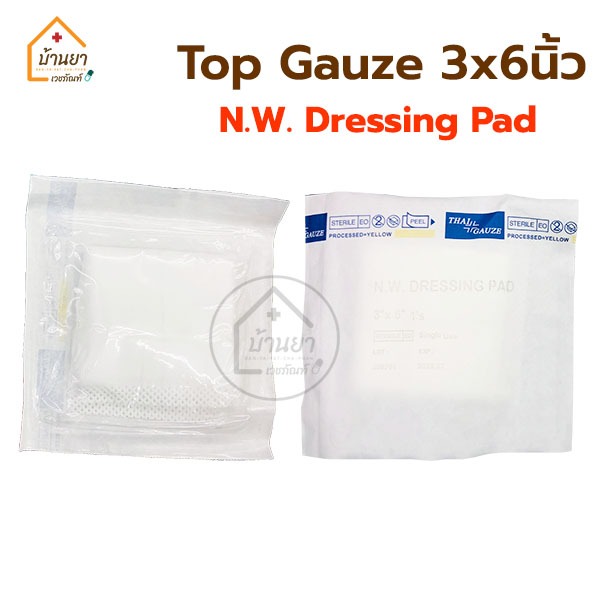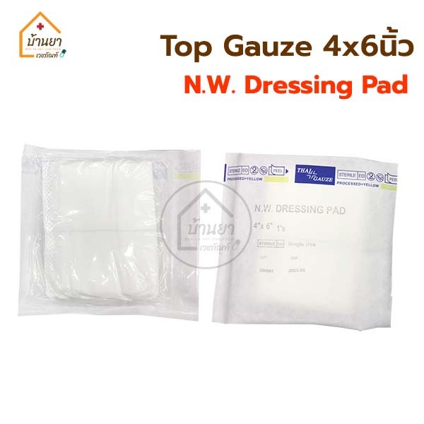 [1แพ็ค 10แผ่น] Top gauze ผ้าก๊อซหุ้มสำลี Top Dressing Gauze Sterile รุ่น Gamgee / N.W. Dressing Pad Thaigauze