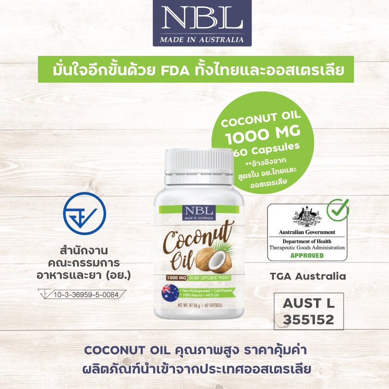 NBL Coconut Oil 1000 mg น้ำมันมะพร้าวสกัดเย็น 1000 มก. (60 Capsules)
