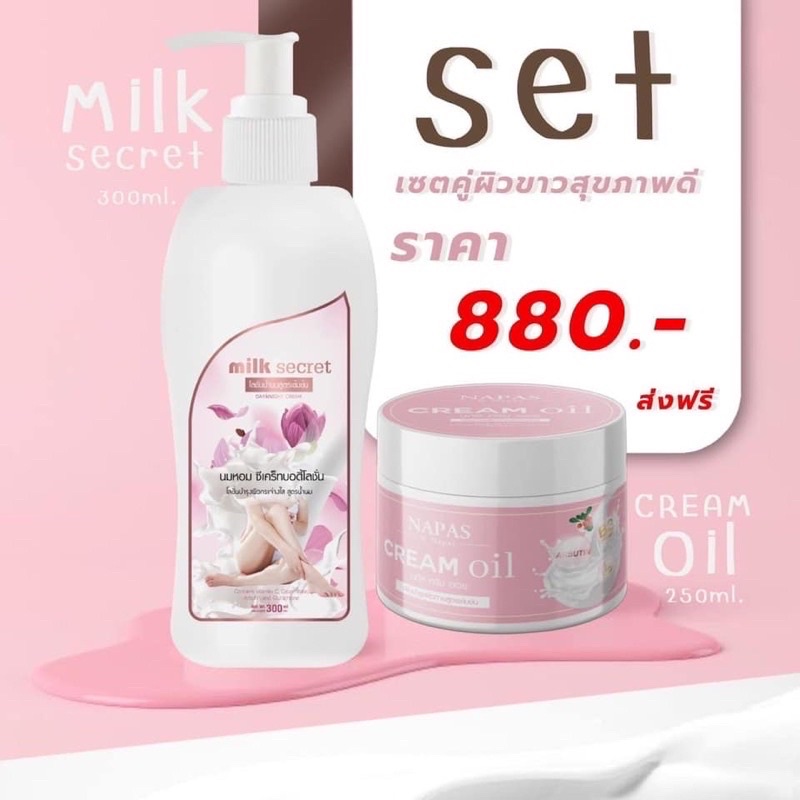 โลชั่นนมหอมซีเคร็ท Milk Secret ซีเคร็ทบอดี้โลชั่น + ครีมออยหอม NAPAS CREAM OIL