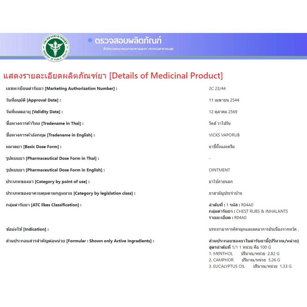 Vicks Vaporub วิคส์ วาเปอรับ 5 กรัม / 10 กรัม / 25 กรัม