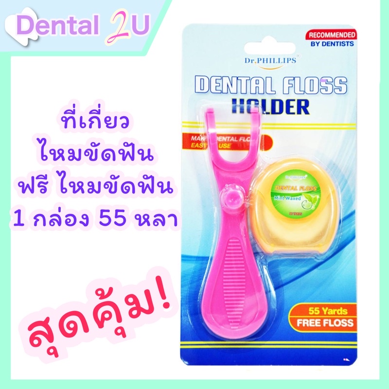 ที่เกี่ยวไหมขัดฟัน Dental floss holder Dr.Phillips ฟรี ไหมขัดฟัน 55 หลา 1 กล่อง กลิ่นมิ้น