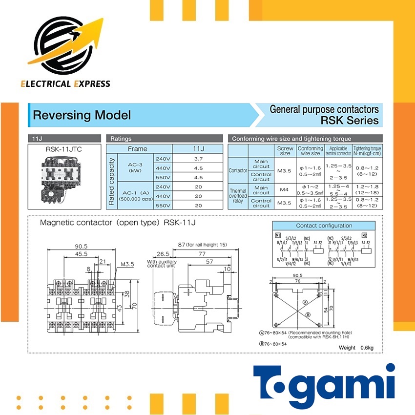 *Japan Quality *แมกเนติกคอนแทคเตอร์ เดินหน้า-ถอยหลัง (Reverseing Magnetic Contactor) แบรนด์โตกามิ (Togami) รุ่น RSK-11J