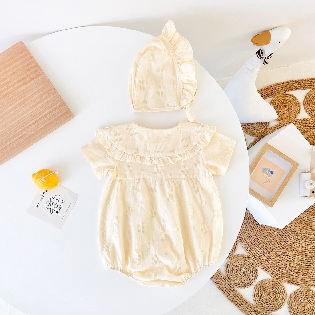 ชุดบอดี้สูท แขนสั้น ผ้าฝ้าย ลายดอกไม้ พร้อมหมวก สไตล์เจ้าหญิง น่ารัก สําหรับเด็กทารกแรกเกิดผู้หญิง