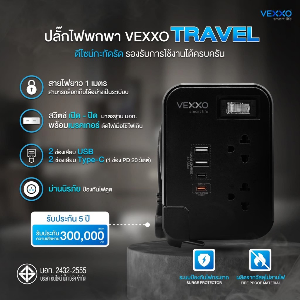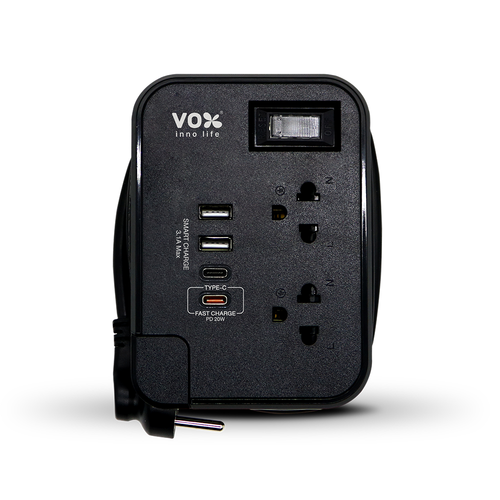 ปลั๊กไฟพกพา Travel series TSPD-212C F5ST3-NON2-2134 1เมตร สีดำ VOX FASTCHARGE
