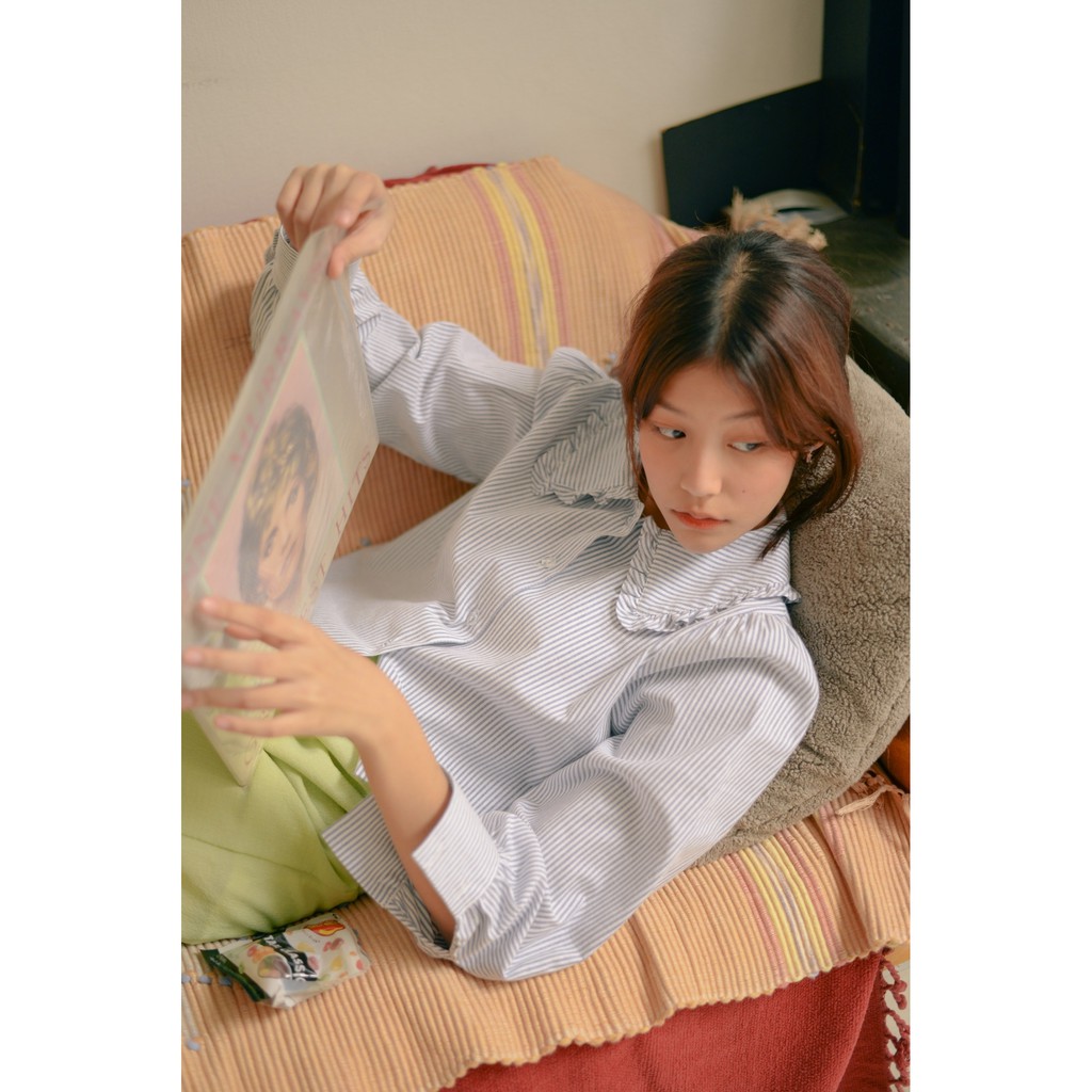 Highestjump Lettuce shirt | เสื้อเชิ๊ตคอปกระบาย Best seller พร้อมส่ง (สีเทาขายดี)