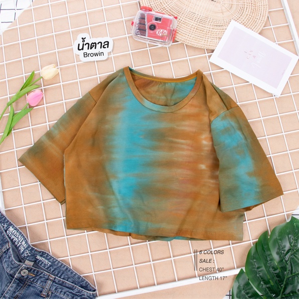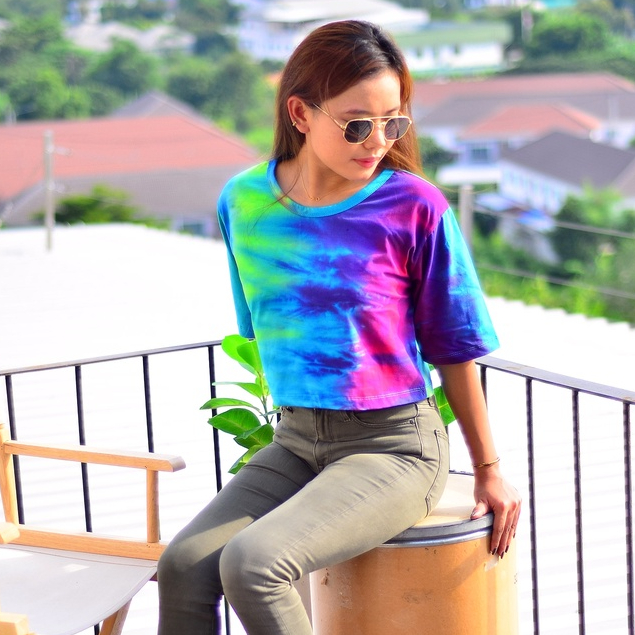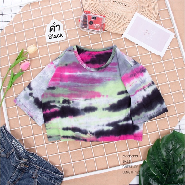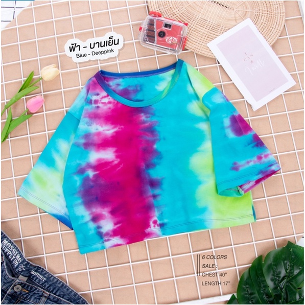 เสื้อครอป มัดย้อม "เรนโบ" ผ้า Cotton100% Rainbow Tie-Dye Crop T-Shirt