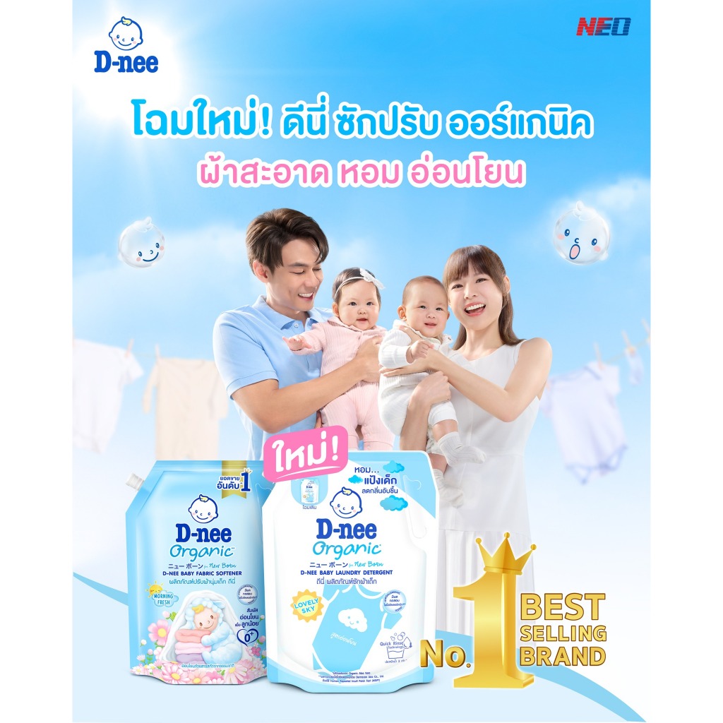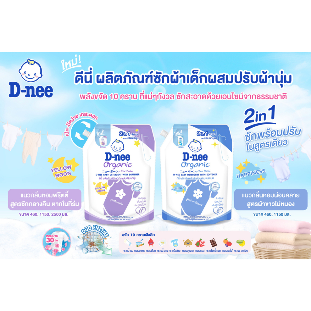 [ถุงมีฝาปิด] D-nee ดีนี่ น้ำยาซักผ้าเด็ก ถุงใหญ่ มีฝาเปิด-ปิด (1000-1300 มล.) น้ำยาซักเด็กดีนี่ ออร์แกนิค สูตรอ่อนโยน