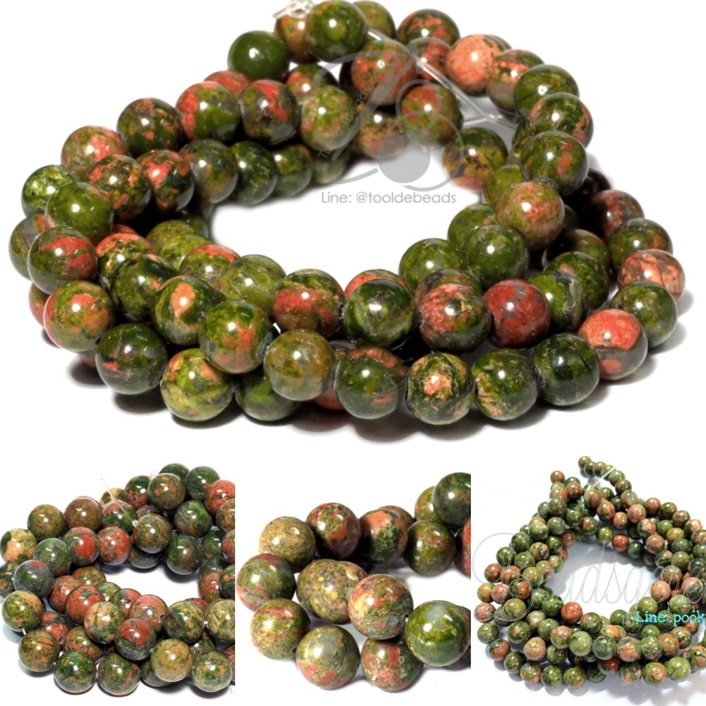 หิน unakite ขนาด 6-8-10-12มิล (32-50 เม็ด)