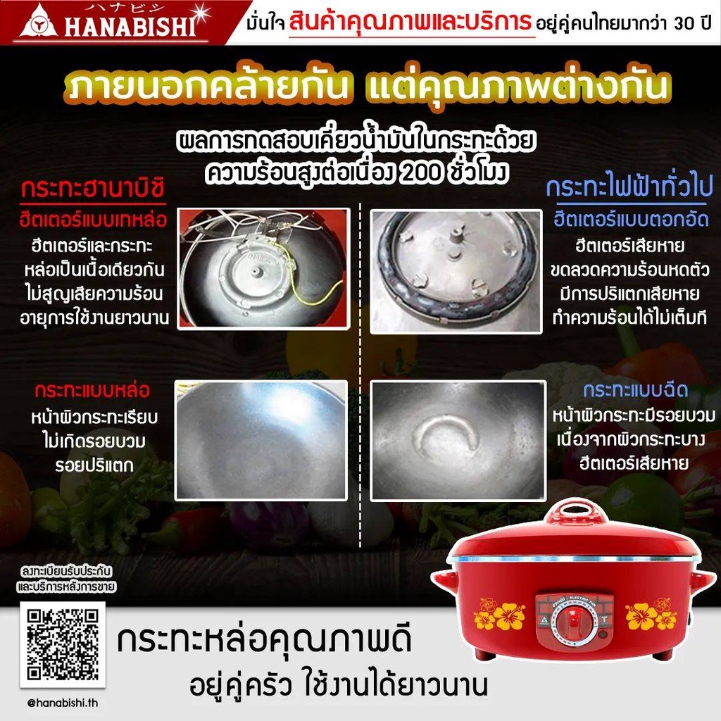 HANABISHIกระทะไฟฟ้า 10 นิ้ว 1.5ลิตร รุ่น HEP-10S กระทะแดงผิวขัดเงา ประกันสินค้า 3 ปี