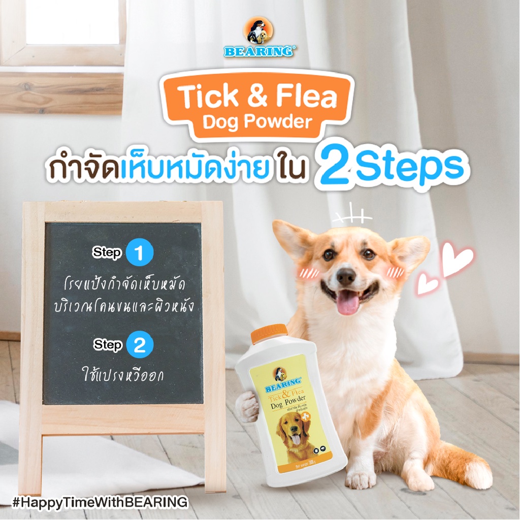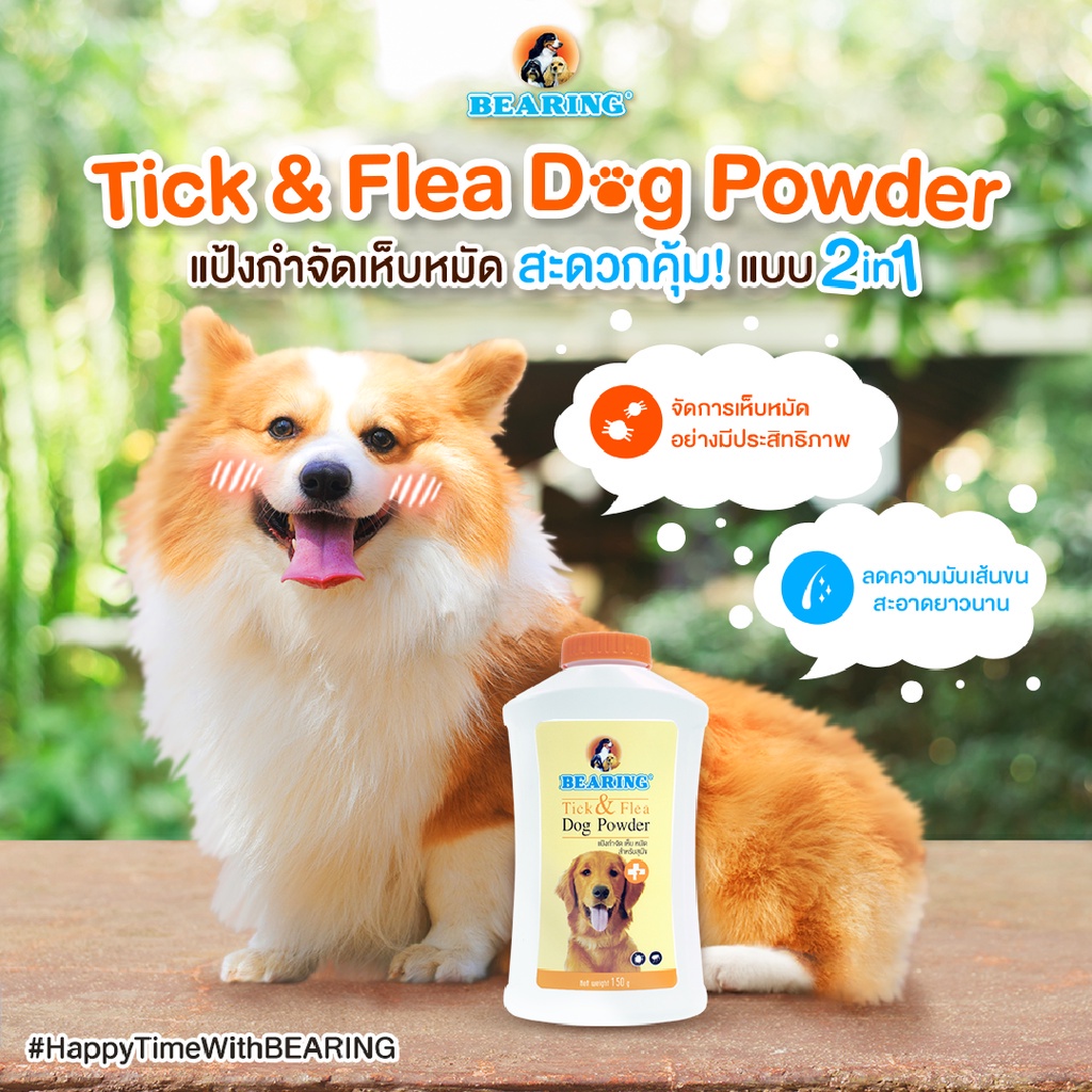 BEARING Tick & Flea Dog Powder แป้งกำจัดเห็บหมัด สำหรับสุนัข แป้งโรยตัวสุนัข ลดความมันผิวหนัง เส้นขน