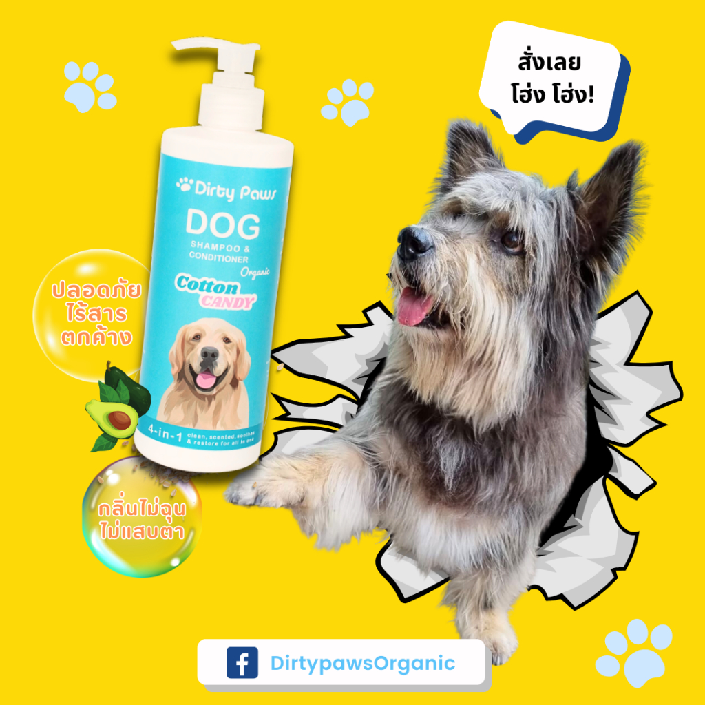3 ขวดสุดคุ้ม! +ส่งฟรีไม่ใช้โค้ด+ Dirty Paws แชมพูสุนัข ออร์แกนิค กลิ่น Cotton Candy ขนาด 500 ml.