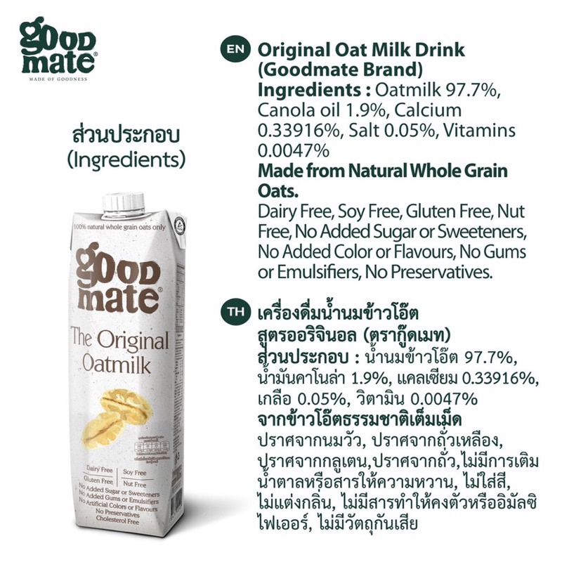 ðĨðĨ Goodmate The Original Oat Milk āļāļđāđāļāđāļĄāļ āļāļĄāđāļāđāļ āļŠāļđāļāļĢāļāļāļĢāļīāļāļīāļāļāļĨ āļāļāļēāļ 1000 āļĄāļĨ.