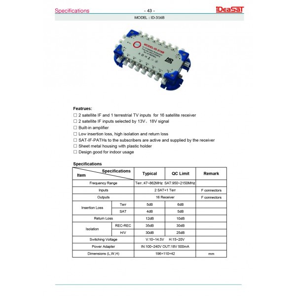 มัลติสวิตช์ iDeaSat Multi Switch ID-316B รองรับดาวเทียม และ ทีวีดิจิตอล