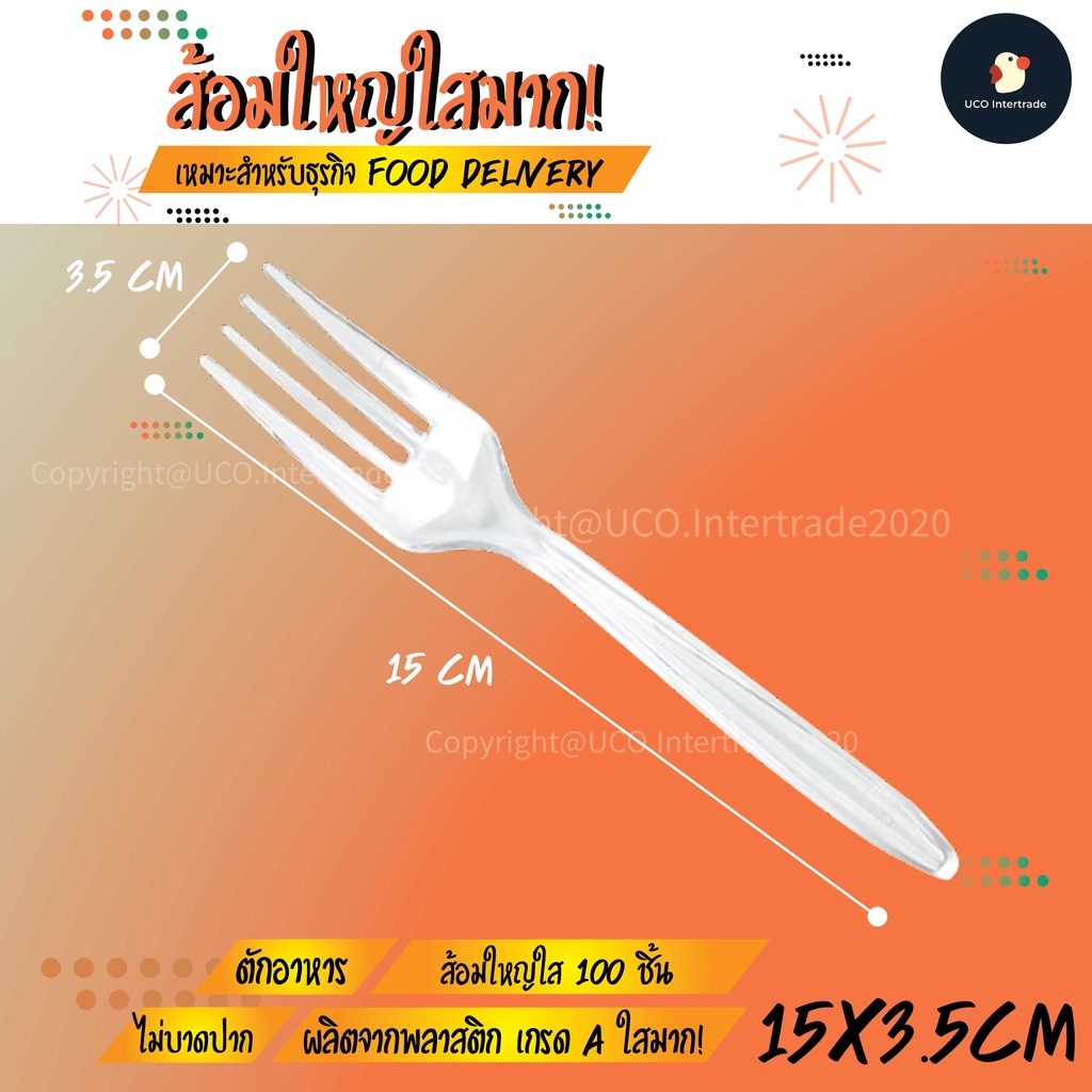 ช้อน ส้อม ช้อนส้อม ช้อนส้อมพลาสติกใส ช้อนพลาสติก สำหรับร้านอาหาร *ขายแยกแพ็ค*ด้ามยาว 15 ซม PP บรรจุ 100 ชิ้น ขอบเนียน