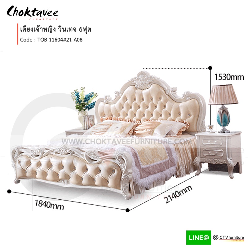 ** ส่งฟรี ** เตียงเจ้าหญิง เตียงวินเทจ เตียงหลุยส์ Silver-Series รุ่น TOB-11604 White [Pick Collection]