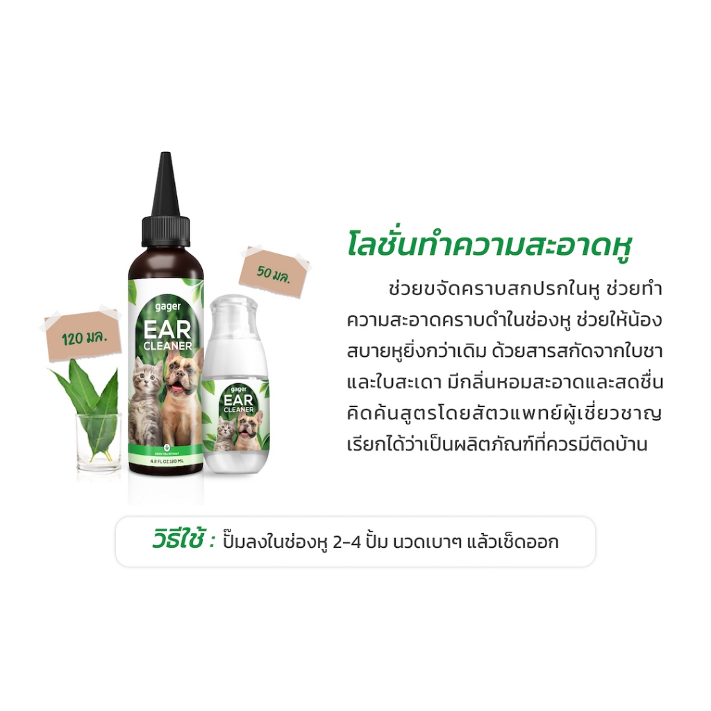 Gager (กาเจอร์) โลชั่นเช็ดหูแมว โลชั่นเช็ดหูหมา โลชั่นทำความสะอาดหู ช่วยลดกลิ่น ป้องกันไรหู ใช้ได้ทั้งแมวและหมา (120ml.)