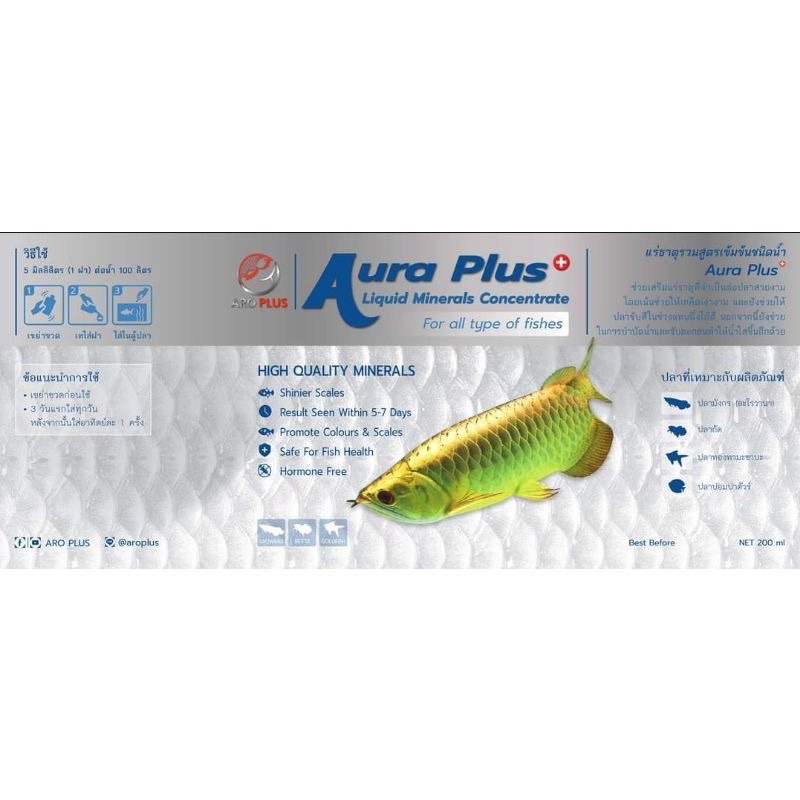 Aro Plus - Aura Plus แร่ธาตุรวม สูตรเข้มข้น ชนิดน้ำ ขนาด 200 ml. ช่วยให้เกล็ดเงา สีสวย 🐟🐠🎉💙🌈