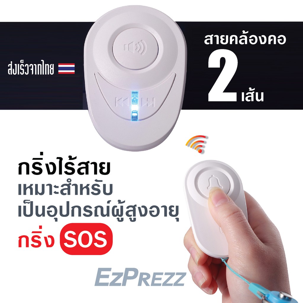 กริ่งฉุกเฉิน ปุ่มกดฉุกเฉิน กริ่งขอความช่วยเหลือ กริ่งผู้สูงอายุ กริ่งพยาบาล ชุด 2 ตัวกด DB
