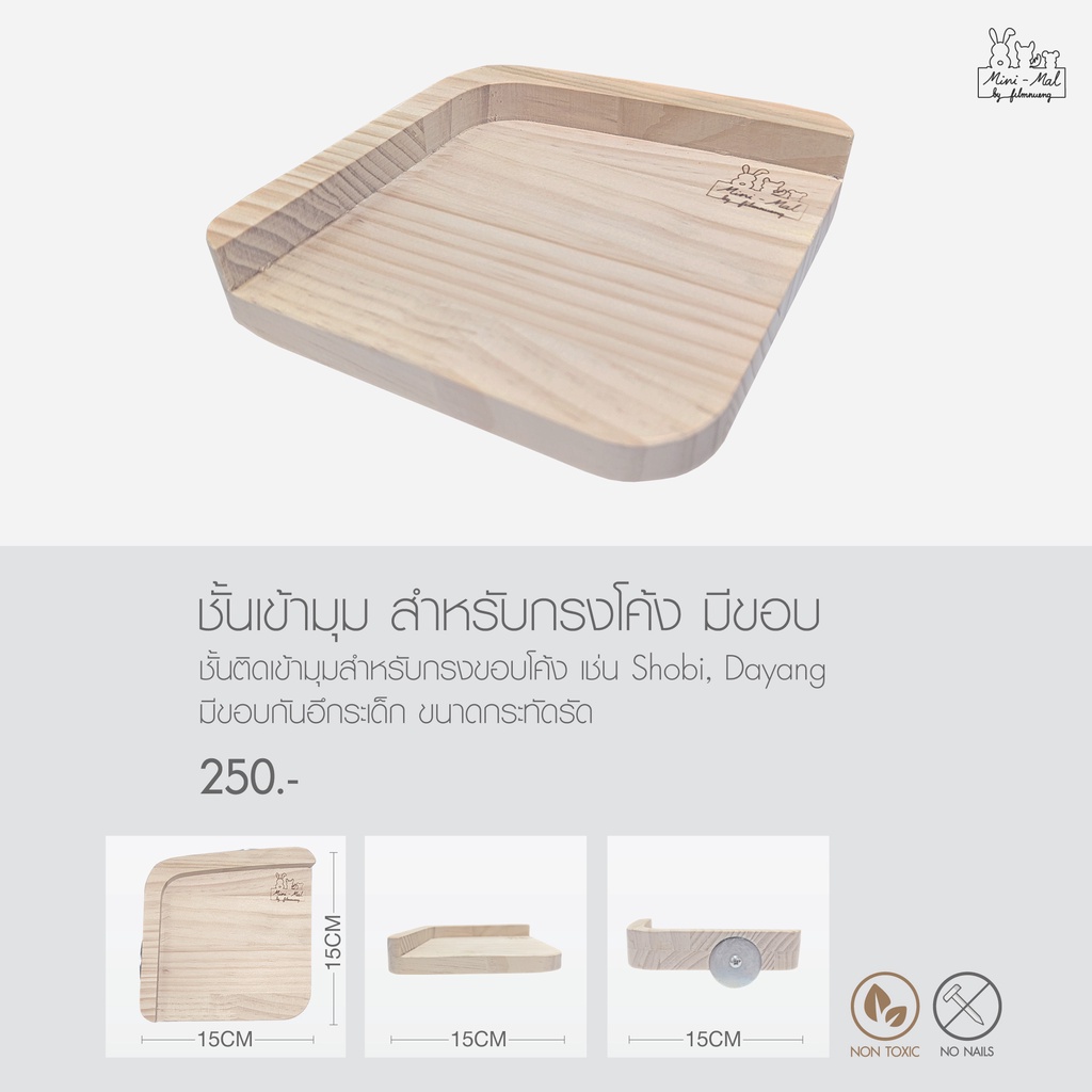 Mini-Mal by filmnueng | ชั้นไม้ติดเข้ามุม สำหรับกรงขอบโค้ง Shobi , Dayang เหมาะสำหรับชินชิลล่า กระต่าย ชูก้า