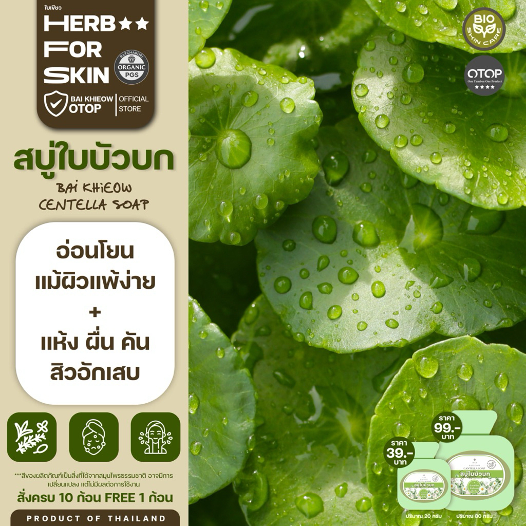 BAI KHIEOW สบู่ใบบัวบก ช่วยปลอบโยนผิว แม้มีแนวโน้มผิวแพ้ง่าย ลดผด ผื่น คัน สิวอักเสบ โดยไม่ทำให้ผิวแห้งตึง