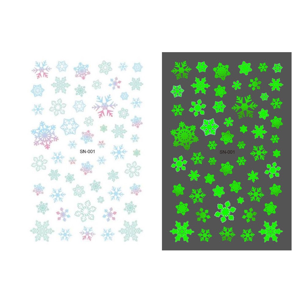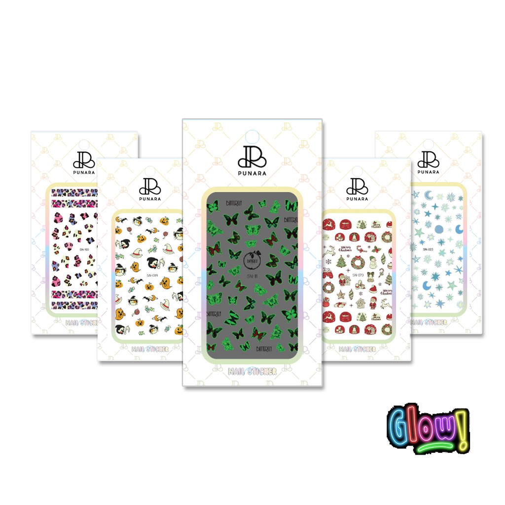 [ซื้อ 4 เเถม 1 ชิ้น] PUNARA สติกเกอร์ติดเล็บเด็กเรืองแสง Glow in The Dark Nail Sticker ลายคริสมาสต์ สโนว์เฟลค