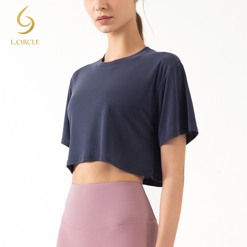 L.CIRCLEเสื้อกีฬาผู้หญิงทรงหลวมโยคะฟิตเนสเสื้อกีฬาสั้น
