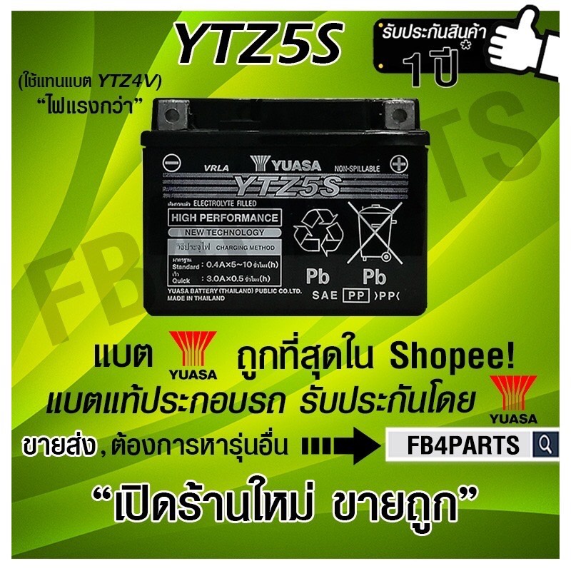 แบตแท้ YTZ5S YUASA (12V 3.7AH) เกรดพิเศษไฟแรงกว่า (CCA 230) แพงแต่ไฟแรงกว่า30%