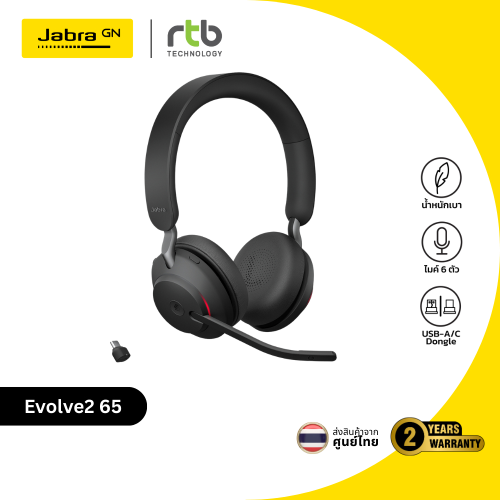 Jabra Evolve2 65 Link380a/Link380c MS Stereo หูฟังประชุมออนไลน์ ไร้สาย Wireless Headset
