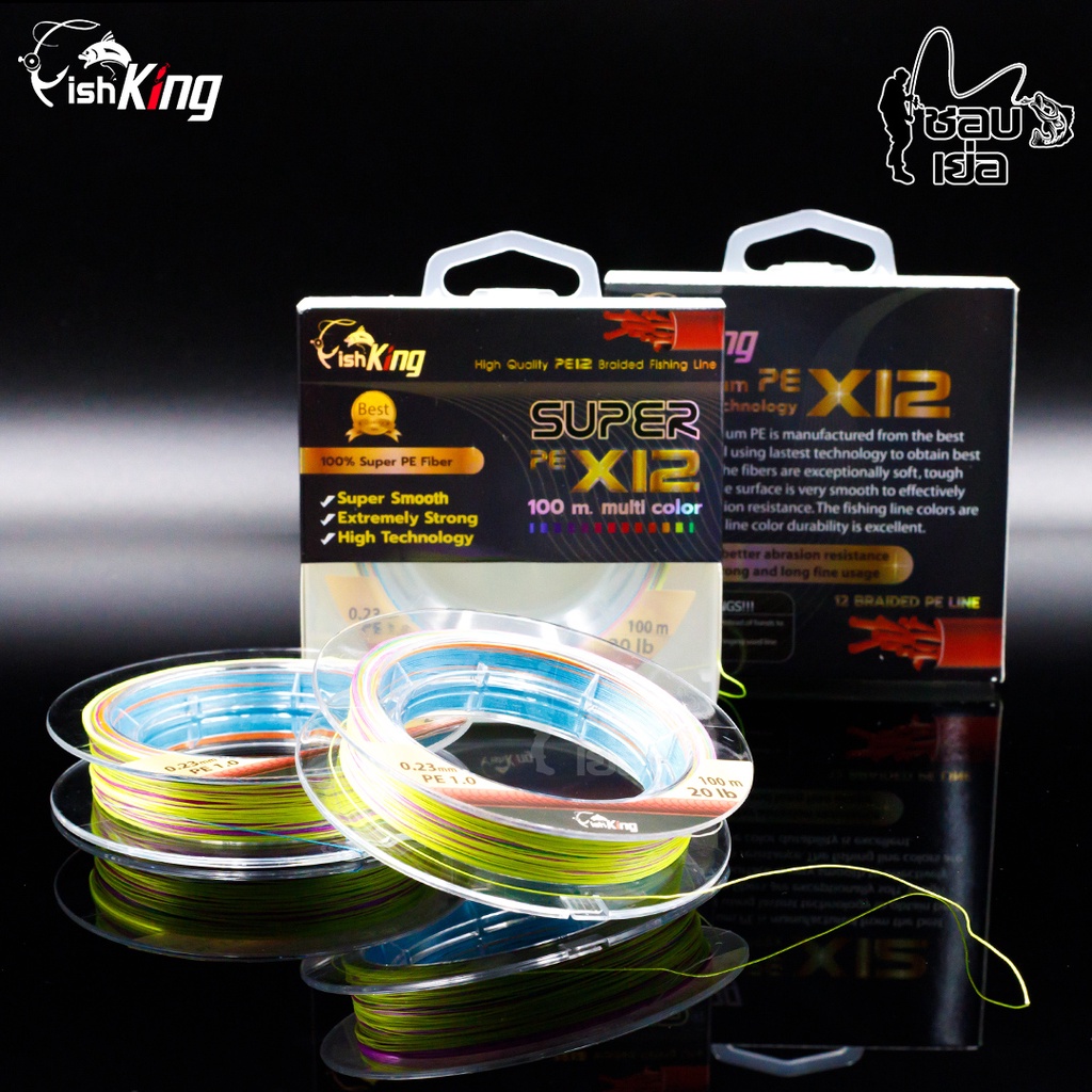 สายพีอี สำหรับตกปลา FISHKING ถัก X12 เส้น หลากสี เหนียวขั้นเทพ!! เส้นกลม ลื่นไม่สากมือ โดนน้ำเส้นจะนุ่มมาก